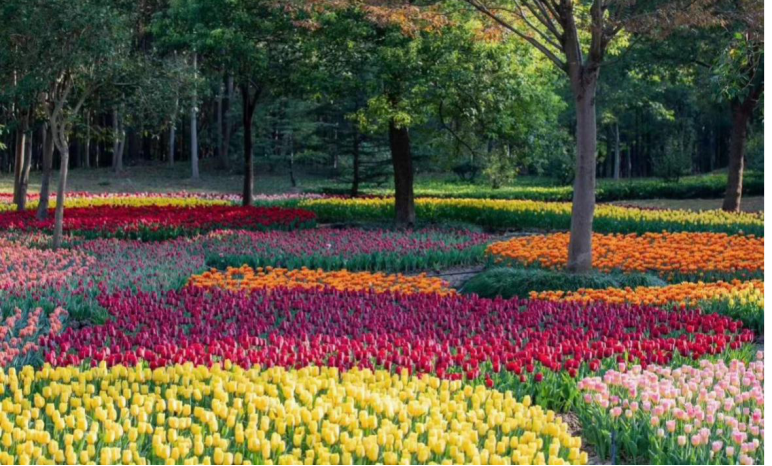 (图为石辉辉拍摄的老家为花博会所建设的郁金香园地)