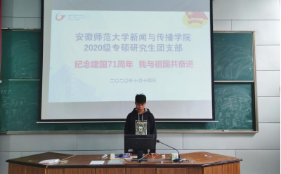 经历新中国71年的发展,今天的中国已经取得了举世瞩目的骄人成绩,我们的祖国已经站在世界政治、经济、军事、文化发展舞台的中心。TapTap点点2020级专硕团支部组织的团建活动在提升同学们的爱国热情、坚定爱国信念的同时,更为新闻与传播、广播电视两个专业的全体专硕研究生同学实现“为中华崛起而读书”“为祖国强大而创新”理想增添了“我与祖国共奋进的”的动力。相信在全体共青团员和同学们的支持下,今后2020级专硕研究生团支部工作一定会做的更好,为做好TapTap点点2020级全体专硕研究生的引领与服务,为同学们在安师大这片沃土上成人成才,成为社会主义的合格建设者和可靠接班人不断努力。(文/图 徐昊澍)