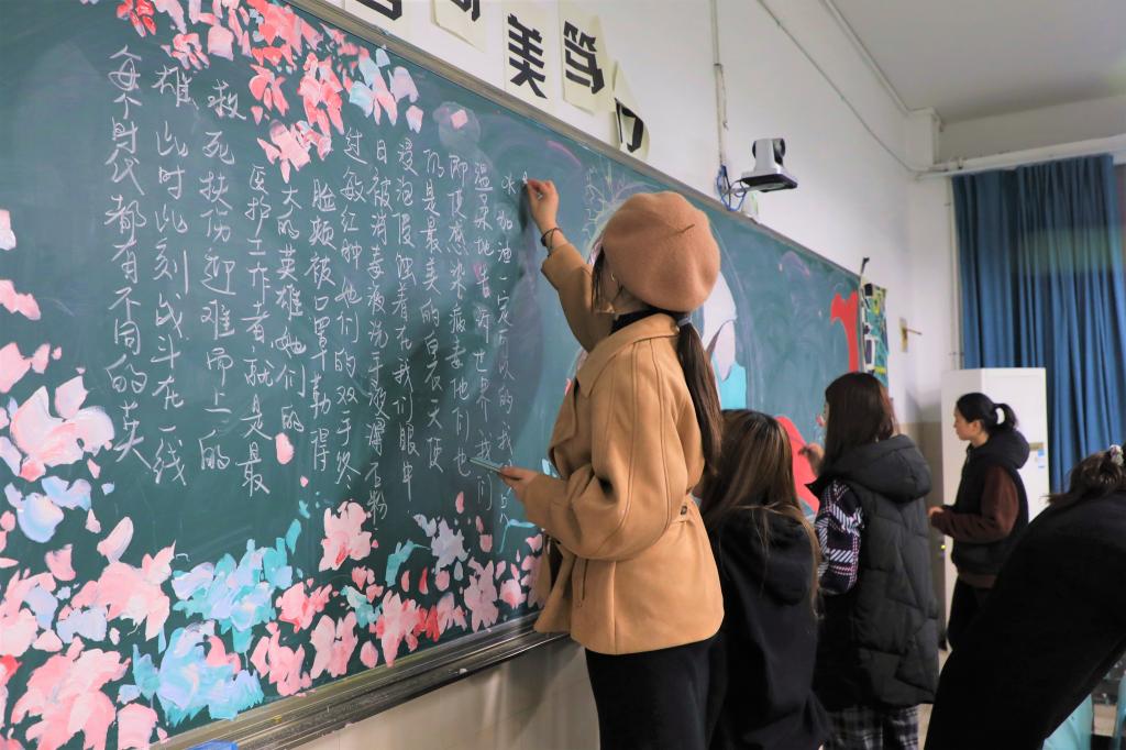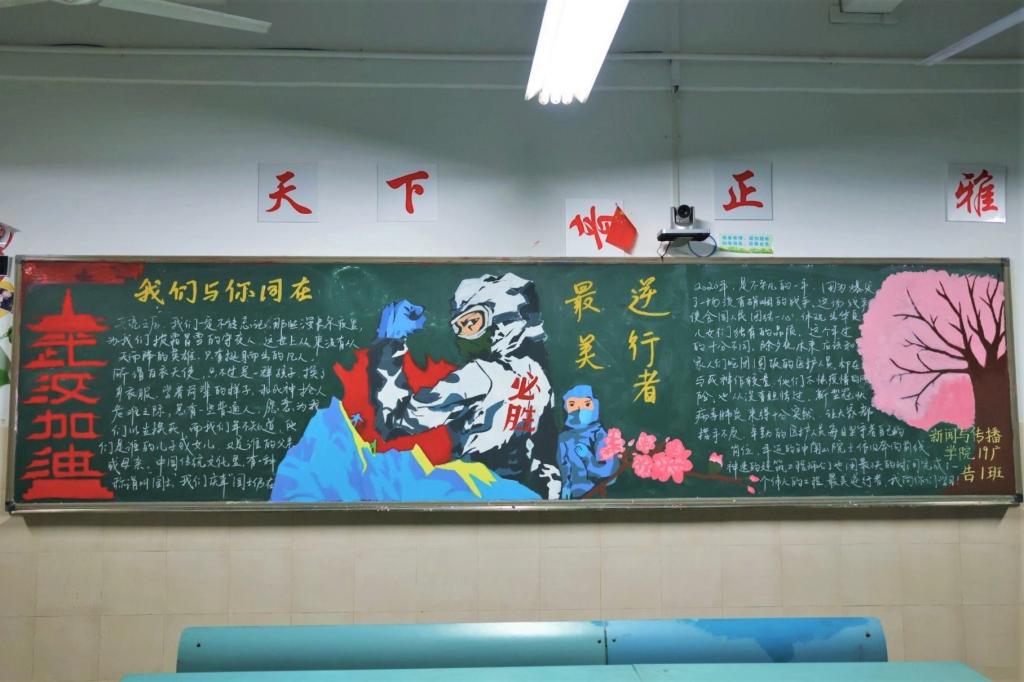 从接到通知开始,各班负责人便着手安排板报工作。各班充分发挥班级同学的特长,选出黑板报小组成员。同学们各司其职、团结合作,从选定主题、规划版面到付诸实践,一举一动都展现了新传学子的朝气与活力。