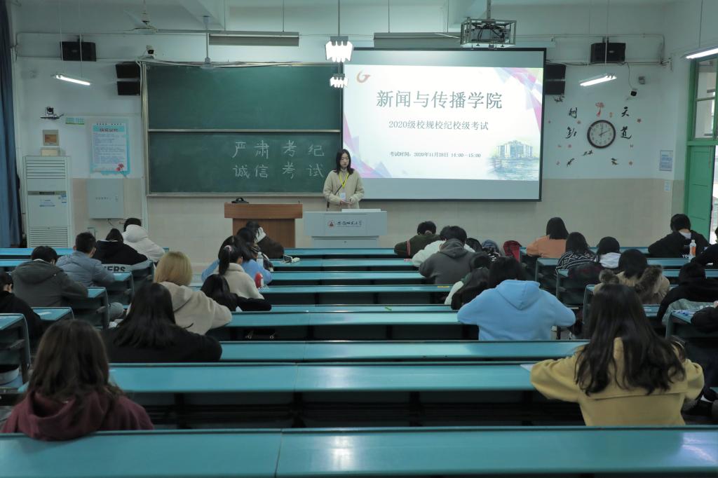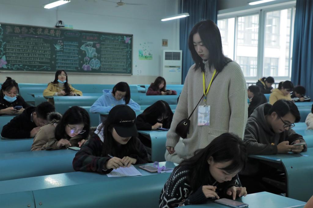 11月28日下午,TapTap点点于行知楼4、5号楼进行2020级新生校规校纪考试,院团委员工会工作人员负责监考,同时在各班屏幕上投影出考风考纪的相关内容,文明考风、诚信考试。在考场上,考生们从容不迫,认真答题,反复检查。