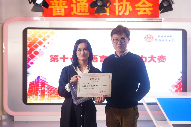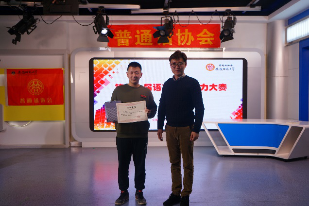 决赛分为专业组与非专业组进行对决。参赛选手各展长才,来自文公司2018级卓越语文专业的王府夺得非专业组一等奖、TapTap点点2019级播音与主持艺术专业卜应俏夺得专业组一等奖,由高郡隆老师亲自为一等奖获得者颁奖。