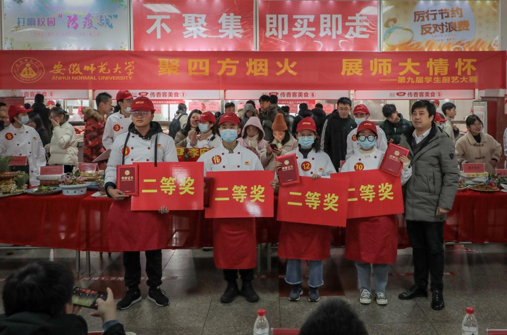 谈及此次比赛的感受,三位同学分别从不同方面表达了各自的看法。回顾比赛全过程后,梁浩然说道:“精心的准备、波折的过程、意外的惊喜,令人猝不及防,感谢食堂师傅们的帮助,也感谢同学们的支持。”陶苗苗在谈及参赛的菜品时说道:“我很喜欢这样一个句子:大多数美食,都是不同食材组合碰撞产生的裂变性奇观,若以人情世故来看食材的相逢,有的是让人叫绝的天作之和,有的是叫人动容的邂逅偶遇,有的是令人击节的相见恨晚。这句话就像我们的《三珍如意钱》,我们把看似不相干的几样食材结合在一起,将安徽特色与江苏味道相结合,碰撞出来别一番的风味。” 张雨瑄则表达了她的感谢:“很高兴也很荣幸得到老师和同学的认可,也感谢食堂经理和辅助厨师的指导与帮助,我们从这次比赛中学习到了很多,拿到二等奖对我们来说既是鼓励也是鞭策。”