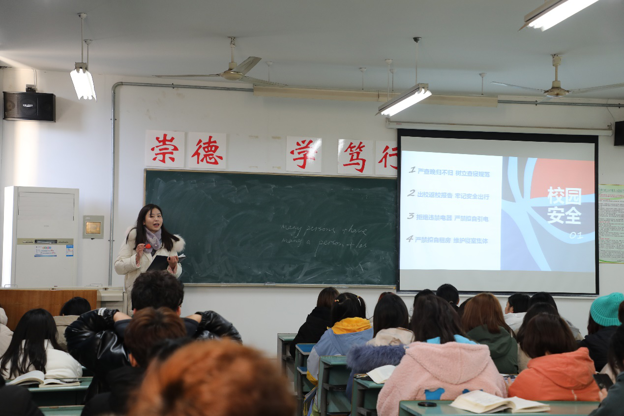 王文君针对安全问题提出四点具体要求:首先是严查晚归不归,树立查寝规范;其次是出校返校报告,牢记安全出行;再次是拒绝违禁电器,严禁擅自引电;最后是严禁擅自租房,维护寝室集体。并给同学们浏览了相关的违纪违规红色文件,以示警醒。王文君强调,深冬到来,每个同学都要做好防寒保暖,拥有一个健康的身体,外出记得戴口罩、预防流感、注重身边的人身安全、交通安全、用电用火安全防范,让我们注重这些身边的小事,拥有一个更加安全的生活环境。提高警惕意识,避免上当受骗,遇事沉着理智。在男女交往方面要慧眼识英雄,自尊自爱避免受伤害。在国家高度关注疫情防控情况的当下,针对同学们的安全,王文君提出了几点要求:一、公共密闭场所应佩戴口罩;二、坚持晨午晚检、“今日校园”健康填报;三、关注中高风险地区;四、离返校请销假和“晚点名”制度,因病请假缺勤登记。会中,还强调了日常管理财务等方面的问题,抵制邪教、封建迷信和非法传销、不良网贷;学习金融安全知识、提防电信诈骗与校园贷等;严禁员工在教学区及公寓区举办各种形式的西方节日聚会或晚会;注意防盗、防传染疾病、防食物中毒、防交通事故以及禁毒防艾。