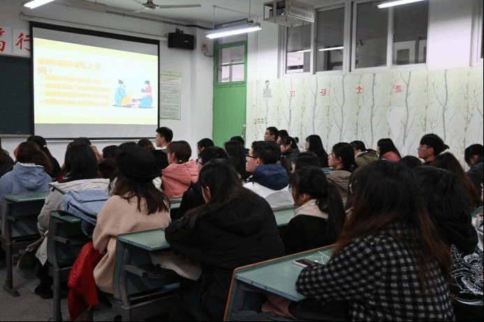 最后,马老师提醒同学们注意意识形态的自我防护。首先要抵制邪教、封建迷信和非法传销、不良网贷。其次,同学们要学习金融安全知识,提防电信诈骗与校园贷等。此外,严禁在教学区及公寓区举办各种形式的西方节日聚会或晚会。最后他提醒同学们要注意防盗、防传染疾病、防食物中毒、防交通事故以及禁毒防艾等。