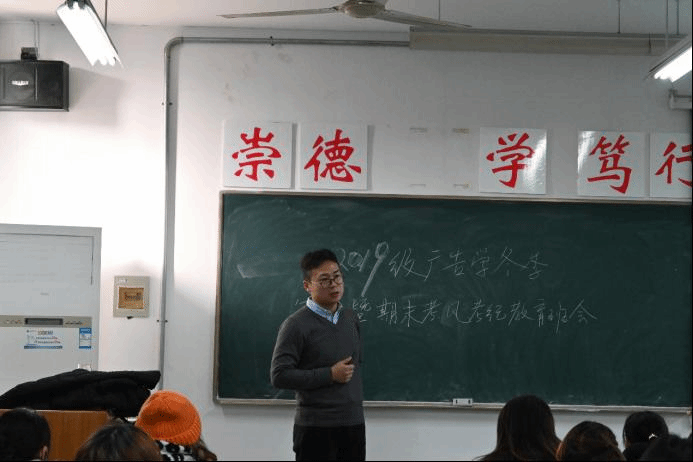 临近期末,马星宇老师也对期末考试期间的考风考纪做出了强调。他指出,考试必须严肃对待,不可存在一丝的侥幸心理而出现夹带与考试无关用品甚至是代考等行为。他向我们举例说明了考试作弊在公司甚至是全社会的严重后果,在公司,考试作弊一般做记过以上处分,而在全社会特别是国家级考试中,根据《最高人民法院、最高人民检察院关于办理考试作弊等刑事案件适用法律若干问题的解释》,严重考试作弊将会量刑。