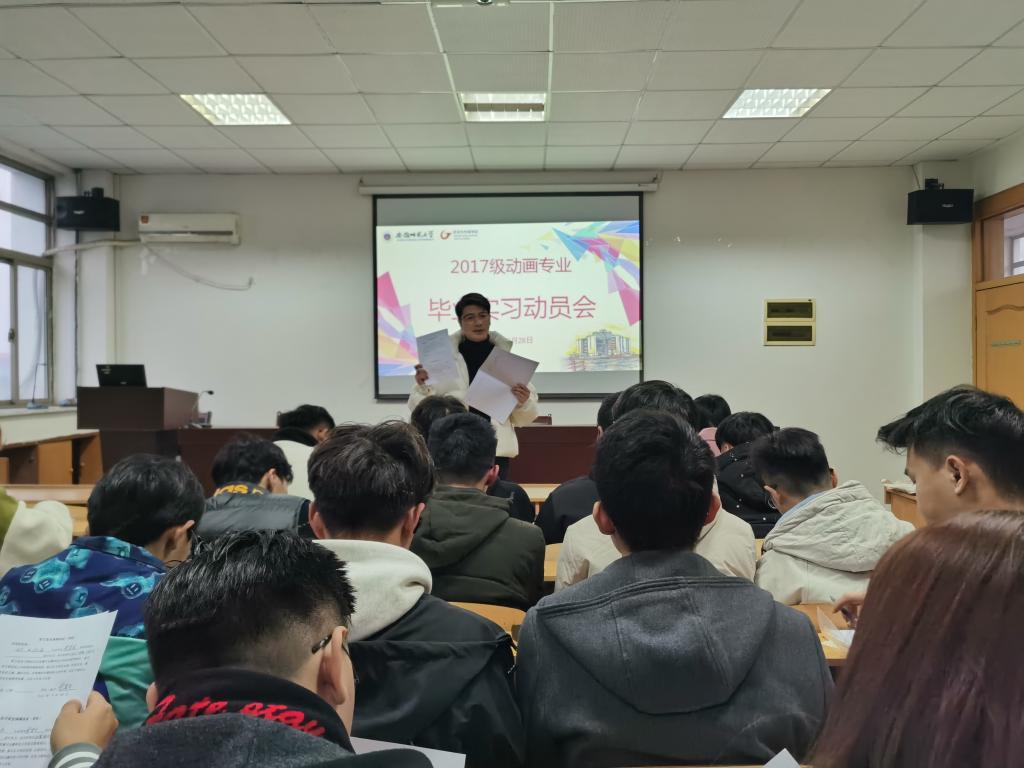 12月28日动画专业在公司四楼会议室召开了2017级本科毕业生实习动员会,会议由动画专业负责人孙亮主持。17级全体员工和辅导员老师张雁一起参加了会议。