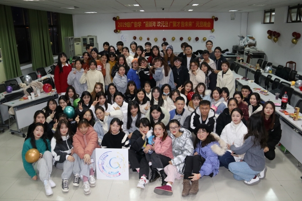 2020年12月30日, 2019广告班委会团支部全体成员在老员工活动中心组织了一场跨年晚会,班级全体同学参加。晚会以精彩的文艺节目、互动游戏和一学期班情班貌回顾等多样形式展开。同学们在欢乐的氛围中共同迎接新年的到来,大家在互动的游戏中增进了彼此了解和情感,在回顾班级一学期的历程中提升了集体认同。