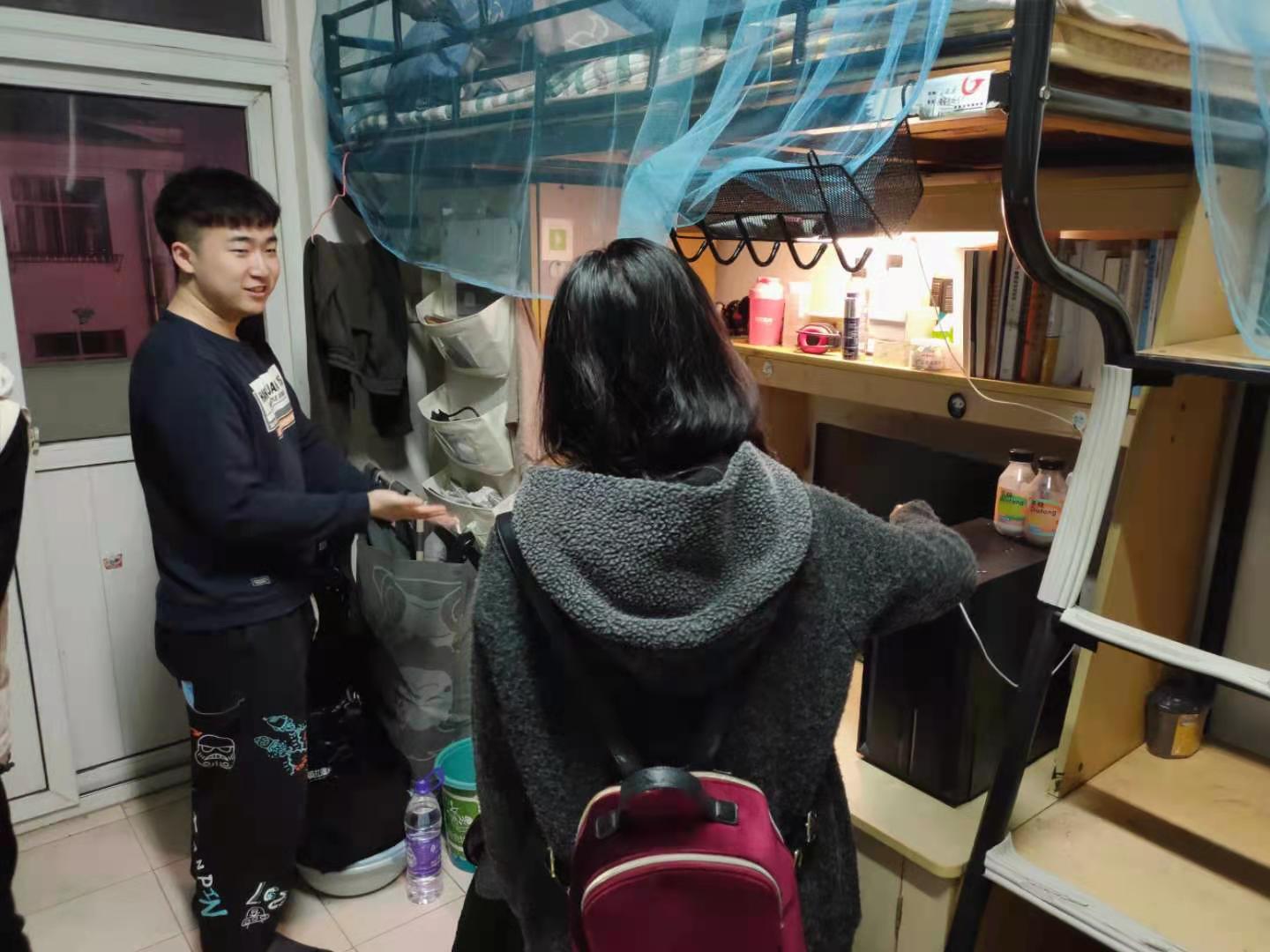 安全教育不停,安全检查不断。在此次查寝中,李梦圆对寝室卫生进行检查、向同学们了解宿舍生活情况、提醒同学们疫情期间保证寝室定期清扫,防止因宿舍卫生问题引发其他疾病。查寝过程中,大多数寝室地面干净、桌面整洁,有些寝室内还摆放了绿色植物,色调柔和的墙纸显得更加温馨舒适。但是也有个别寝室存在接线板拉到床上、物品较多、较为杂乱、未及时开窗透气等问题。李梦圆对安全卫生情况较好的寝室进行了表扬,对存在安全隐患的地方做出了纠正,对个别问题较多的寝室进行了安全教育与引导,再次强调做好寝室安全和卫生工作的重要性。