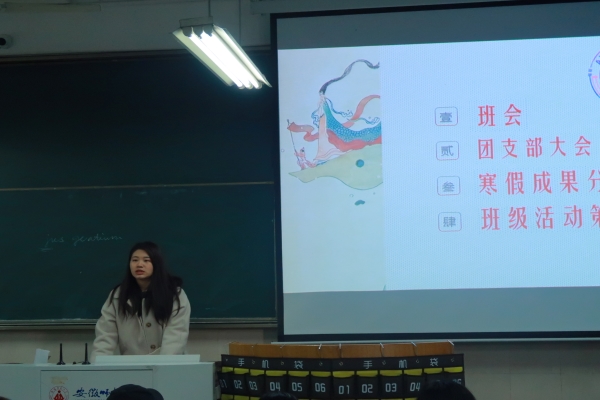 3月12日下午,2019级广告班在行知楼2020103教室召开集体班会暨寒假成果分享会。马星宇老师及19广告班同学一同参加,会议由班长董雨欣、团支书毛玉婷分阶段主持。