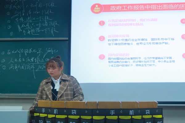 会议第二阶段,团支书毛玉婷主持召开了团支部大会,带领同学门学习红色思想,贯彻两会精神。她介绍了2021年两会基本概述,重点了解两会的七大看点。