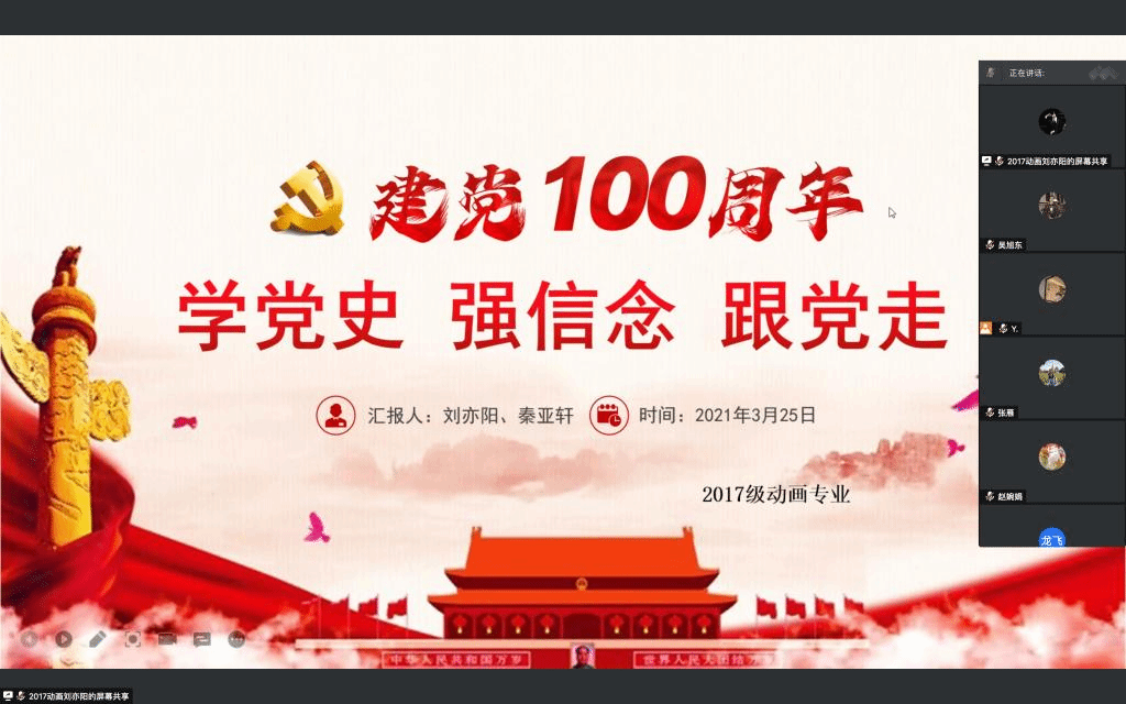 2021年3月25日晚,TapTap点点2017级动画专业团支部在线上腾讯会议举行了“学党史、强信念、跟党走”专题组织生活会暨2020年度团员教育评议,公司团委书记、辅导员张雁出席,专业全体同学参加会议。