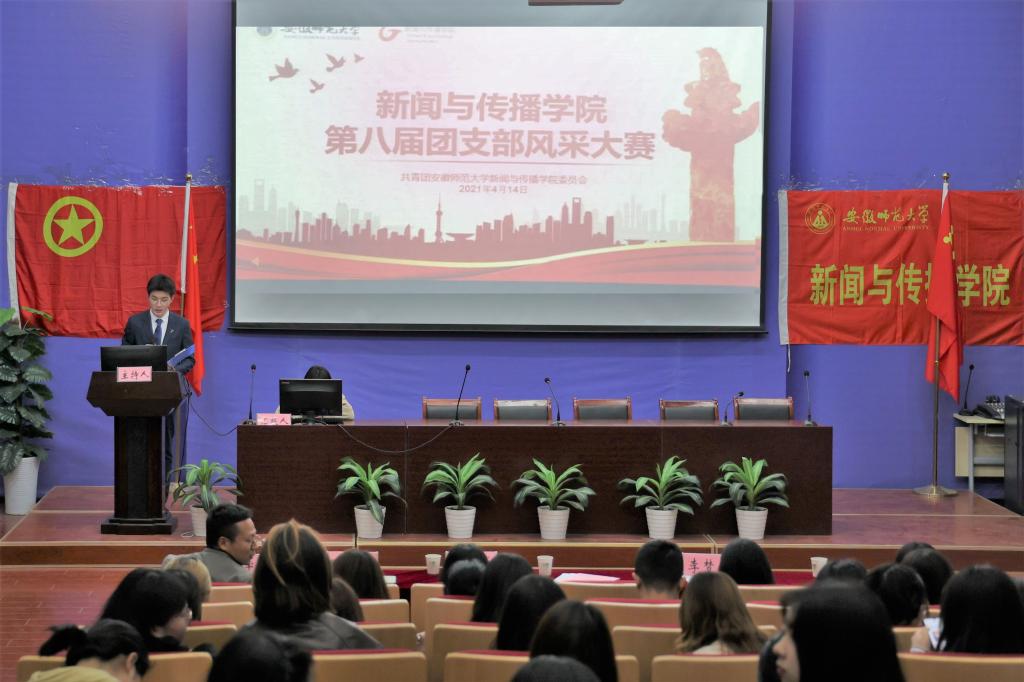 比赛开始前,现场所有人员齐声合唱团歌。首先进行的是团学工作汇报,各团支部书记代表各团支部上台,在五分钟以内以图片演示文稿的方式总结汇报本学期开展的工作情况,讲解各项工作内容,所有的团支书汇报结束之后由评委进行打分。2020级新传三班、播音与主持艺术专业、摄影专业都在汇报中用视频呈现班级日常生活中的欢乐瞬间,场上欢笑不断。团支书们在汇报中讲述了各自的团日活动情况、团支部建设情况,也对支部的未来许下了期许,表达了自己对集体的高度的关注与热爱,细心收集的瞬间与精心准备的素材都展现出了他们极高的工作热情与认真的工作态度。