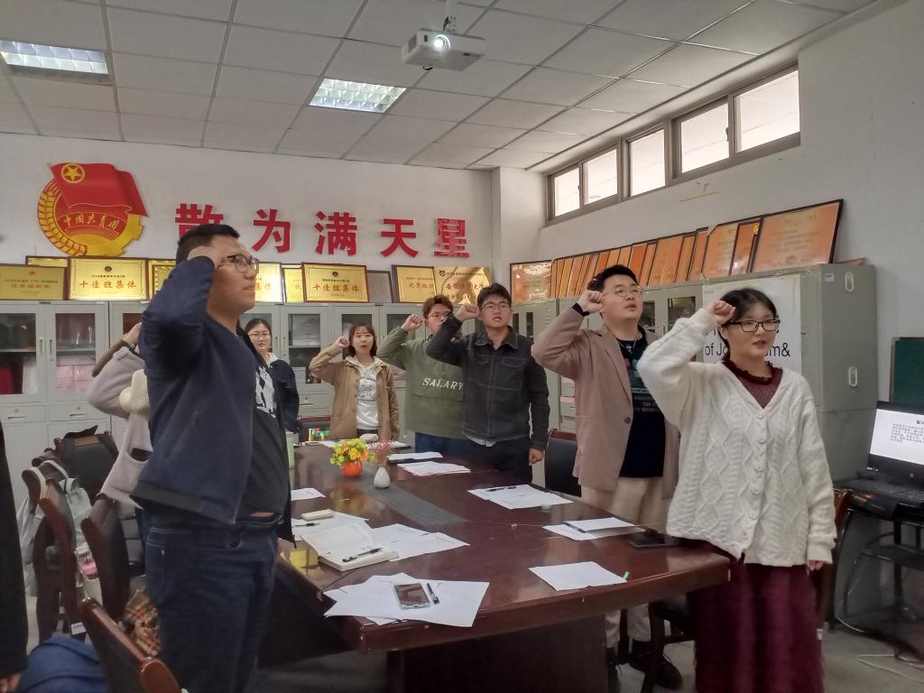 会上,支部开展了入党人员宣誓,由2017级广告学专业张晓辰带领党支部新入成员宣誓,与全体支部成员共同重温入党誓词。
