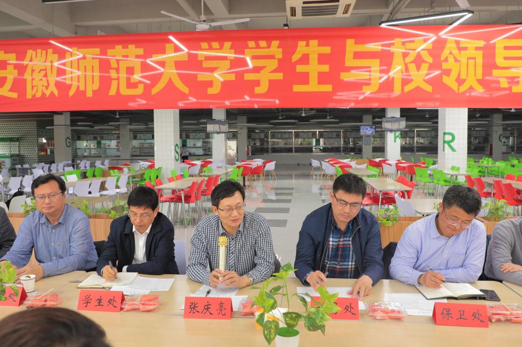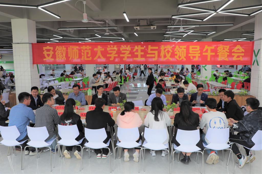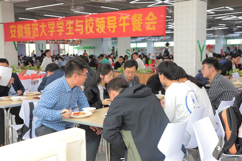 在首先进行的共进午餐环节,校领导们热心关切,询问了关于食堂饮食安全与菜品价格分量的相关问题,同学们细心聆听、认真回答,活动气氛轻松积极,老师与同学们在友好交流中拉近距离,搭建出一座师生之间沟通交流的桥梁。用餐结束后,领导老师与同学们进行专题解惑会议,张庆亮指出,公司的一切工作都从员工群体的切身利益出发,鼓励同学们积极反映学习和生活中遇到的实际困难和问题,他们会积极听取、集思广益,切实地解决相关问题。