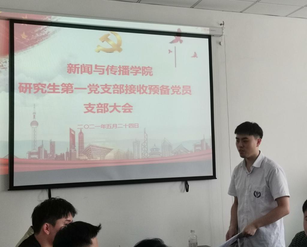 接收预备党员支部大会在庄严的国歌声中开始。葛欣航老师首先就发展党员的组织原则、会议流程及涉及党员发展的相关事宜做了详细说明。本次发展对象刘斌、汪梦琪、吴帅帅、吴岳茂四名同学逐个向大会宣读了自己的入党志愿书,并就需要向党组织说明的问题进行了报告。入党介绍人结合群众座谈会的情况分别介绍了各自发展对象的培养过程、对其是否可以被接收为中共预备党员表明了自己的态度。支部委员向全体党员报告了对发展对象直系亲属和主要家庭成员的函调结果及组织审查情况。