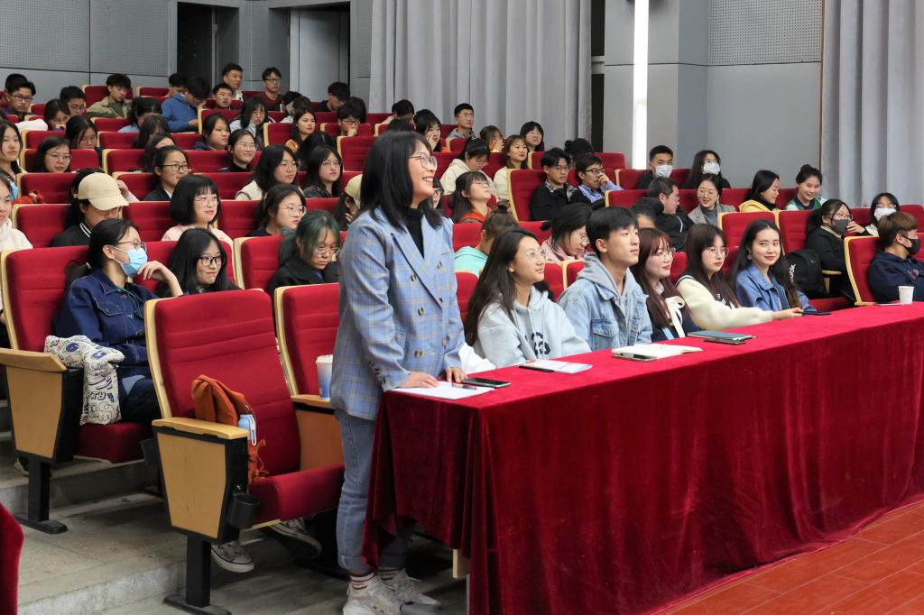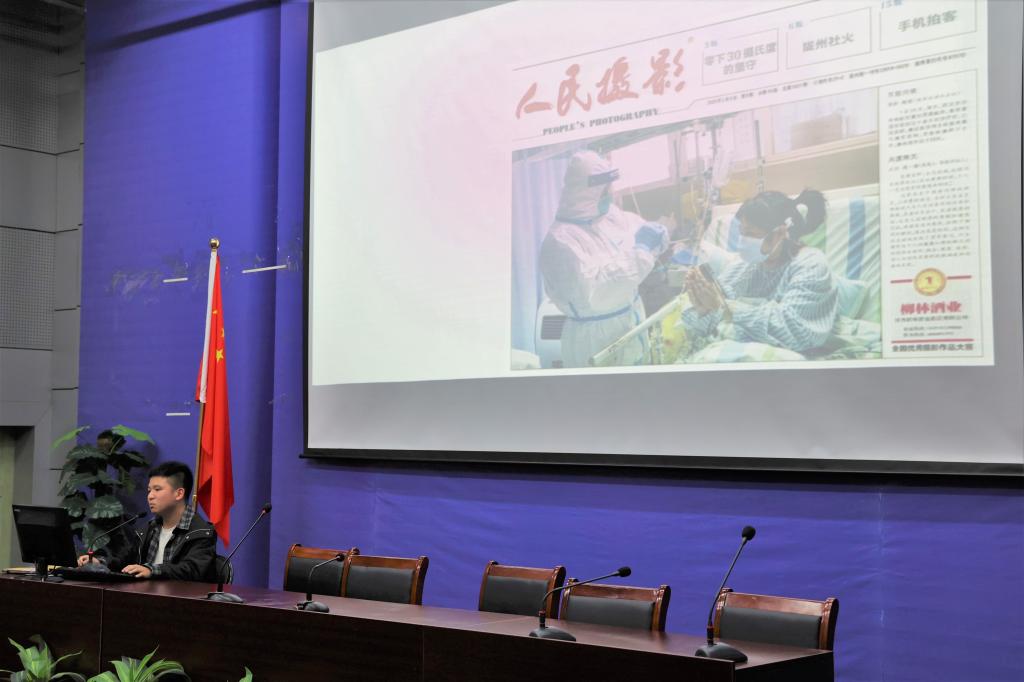 潘志成则围绕“什么是新闻摄影、如何拍好照片、社会实践中的应用、新闻摄影照片交流及赏析”四个方面分享社会实践时新闻摄影的要点。他强调,新闻摄影要讲究趣味性、真实性、完整性,拍摄前必须做好规划。随后,章子悦介绍了她所在团队的人员架构、实践过程及成果。在回顾实践经历时,章子悦鼓励同学们积极参与,提高自身能力。赵梦婷则介绍了公司传媒素养普及培训班的支教工作情况。她表示,支教经历给她带来了不一样的夏天,也希望这一特色实践活动能够传承下去。