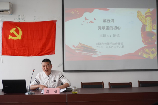 5月28日下午,公司党委委员、行政副经理周伍担任第十期员工党员教育培训班的授课老师,在公司四楼会议室为学员带来了题为《党章里的初心》的第五讲党课,党课由第十期员工党员教育培训班班主任助理刘成俊主持。