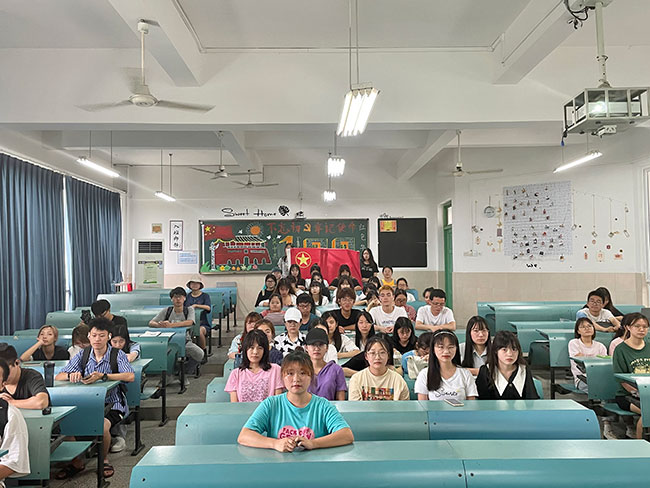 两名预备党员董雨欣同学和金佳红同学首先在本次会议中分别就各自家乡的变化分享了自己的感想。董雨欣来自河北涿州,她从衣、食、住、行四个方面谈到家乡改革开放以来的发展,感叹中国的繁荣复兴。她说,小时候家旁边常有集市,人们赶集购买衣物,改革开放之后,除部分老年人习惯于赶集,大多数人开始选择网上购物;冬天会有人开着大卡车卖白菜,每家都会屯很多,但是现在去超市新鲜蔬菜很方便;以前住的都是大平房,现在都盖了楼房;小时候去北京坐大巴,早上五点出发、下午两三点才能到达,现在坐高铁只需要二十分钟。金佳红来自芜湖无为,她从经济、民生、教育、环境、旅游等方面为大家介绍改革开放后的家乡的发展变化。草根工业的崛起,电线电缆产业的发展,让昔日江边的小渔村,一跃崛起成为安徽省经济第一强镇;高效完备的县乡村三级联动的县域医疗服务体系的构建,一系列基础设施建设的完善,见证了民生的持续改善;获评全国义务教育发展基本均衡县、安徽省教育强县,擦亮“水脉绿城”城市名片,无为力量一步一步变得更加强大。风雨多经人不老,关山初度路犹长。无为,这片见证40年改革开放历史传奇的热土,挺立新时代潮头,逐梦而行,创造辉煌!