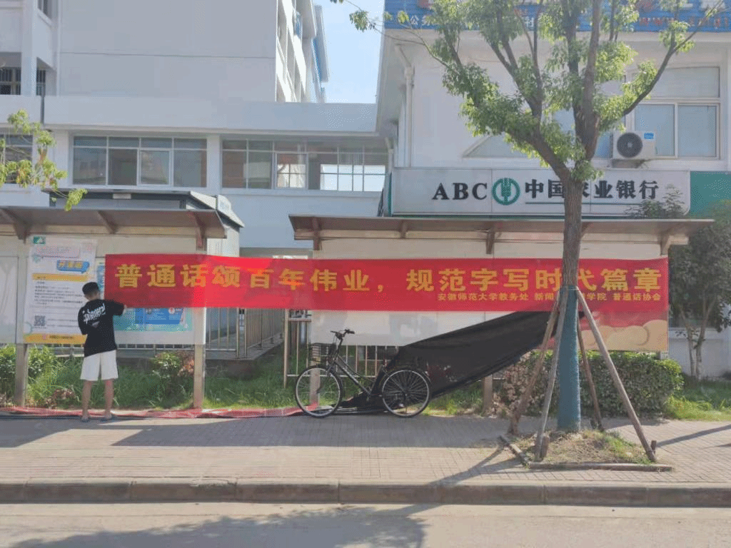 分别在校内食堂,教学楼,行政楼,办公楼等张贴推广普通话的海报,以及挂横幅响应我国第24届普通话推广周的成功举行。