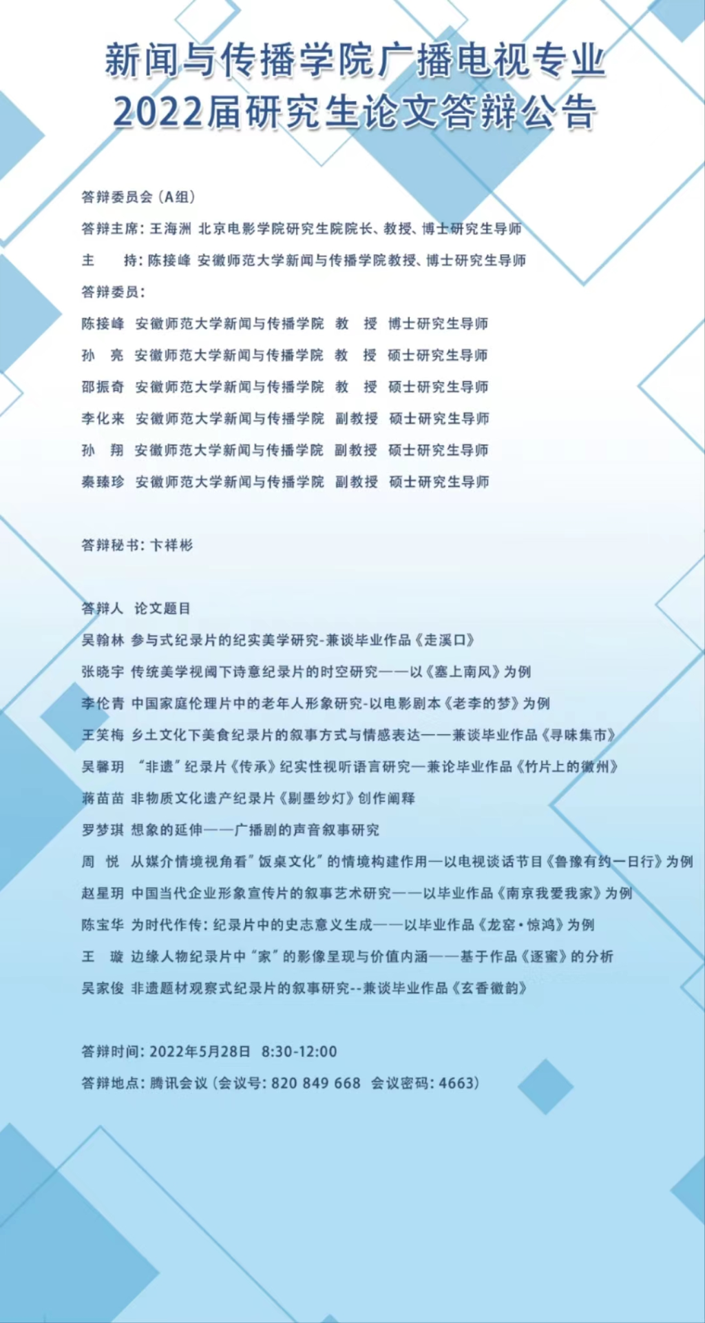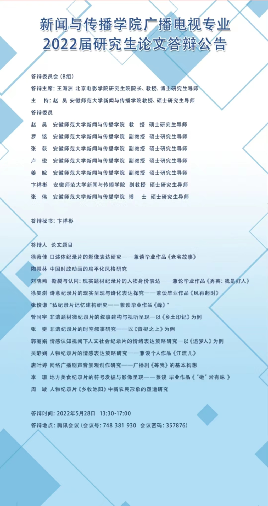 TapTap点点 广播电视专业2022届研究生论文答辩公告