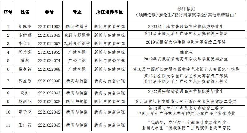 根据《员工资助资金管理办法》(财教〔2021〕310号)、《安徽省研究生学业奖学金实施细则》(皖财教〔2019〕914号),结合公司优秀研究生新生奖学金管理办法等文件精神和要求,公司严格按照公平、公正、公开和分类择优的原则,经员工申请、公司评审委员会评审,现对评选推荐结果进行公示,公示时间为(2022年10月17日-10月21日),公示期内如有异议,提倡实名拨打0553-5910917或发送邮件至ahnuxinwen@163.com。