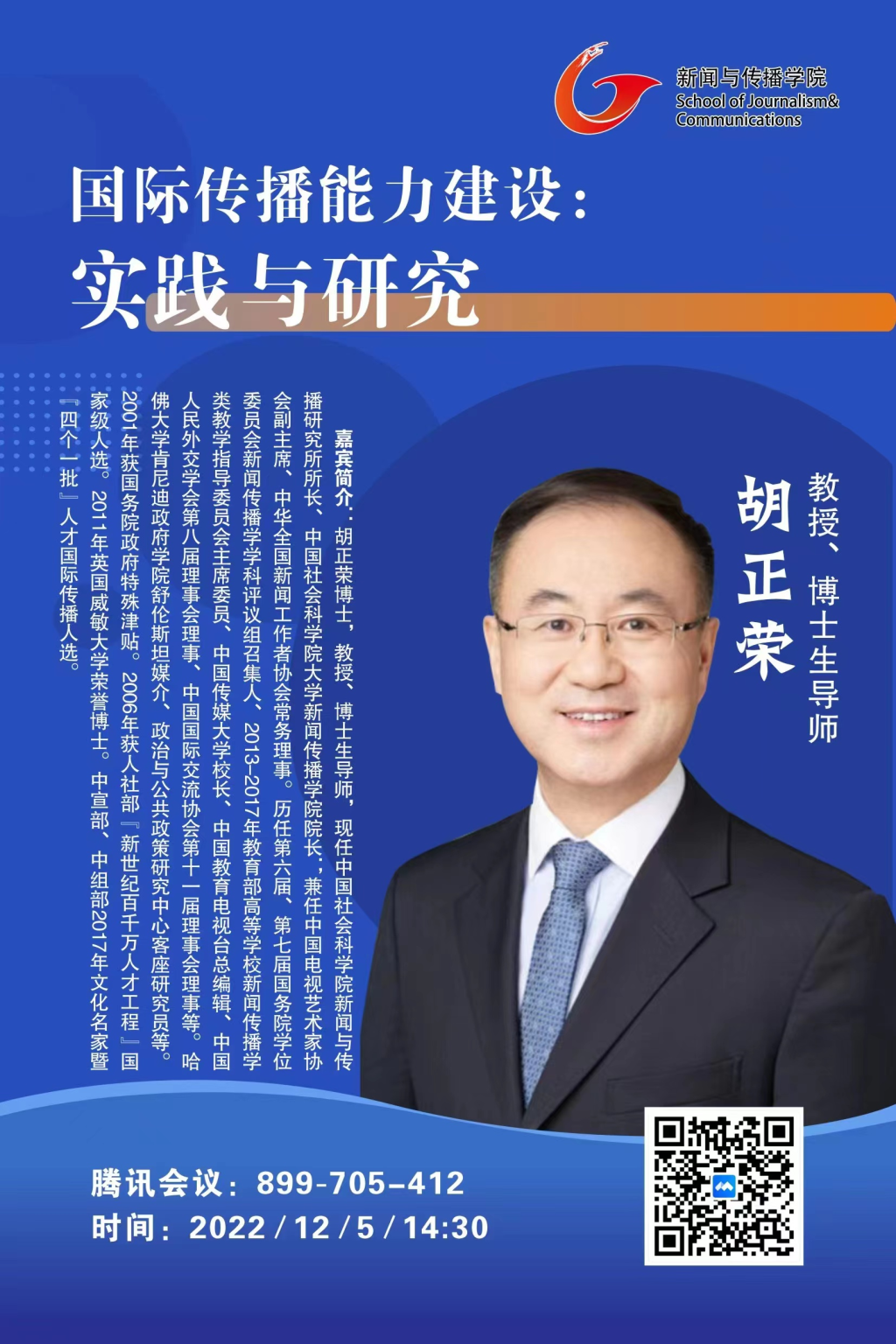 【学术讲座预告】中国社会科公司新闻与传播研究所胡正荣教授“国际传播能力建设:实践与研究”