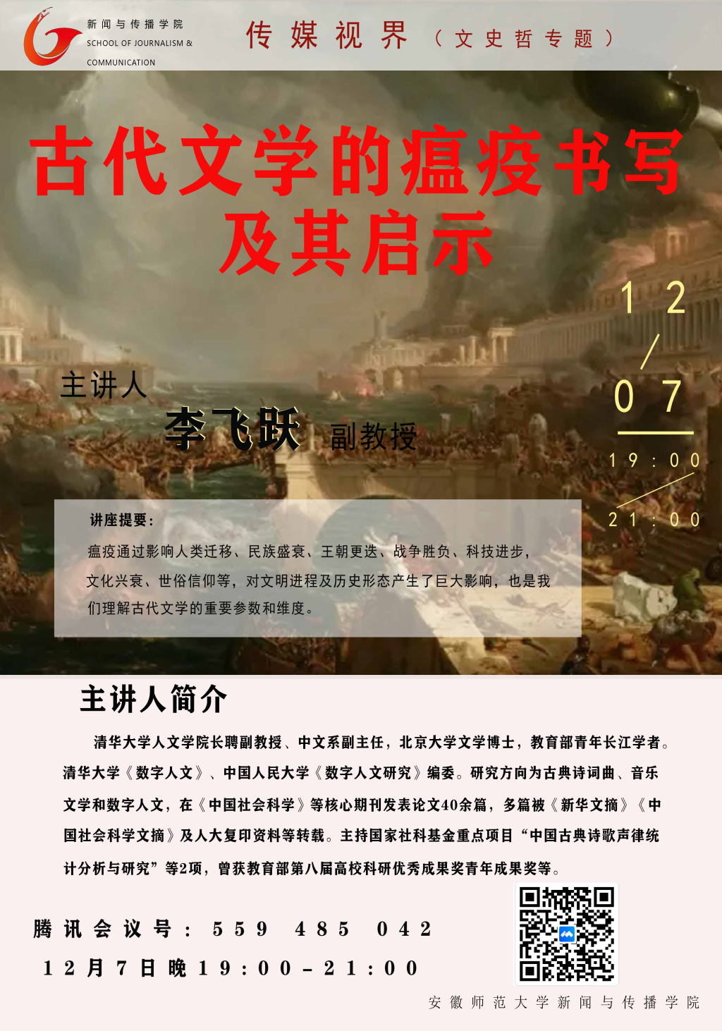 传媒视界讲座(二):清华大学李飞跃教授“古代文学的瘟疫书写及其启示”