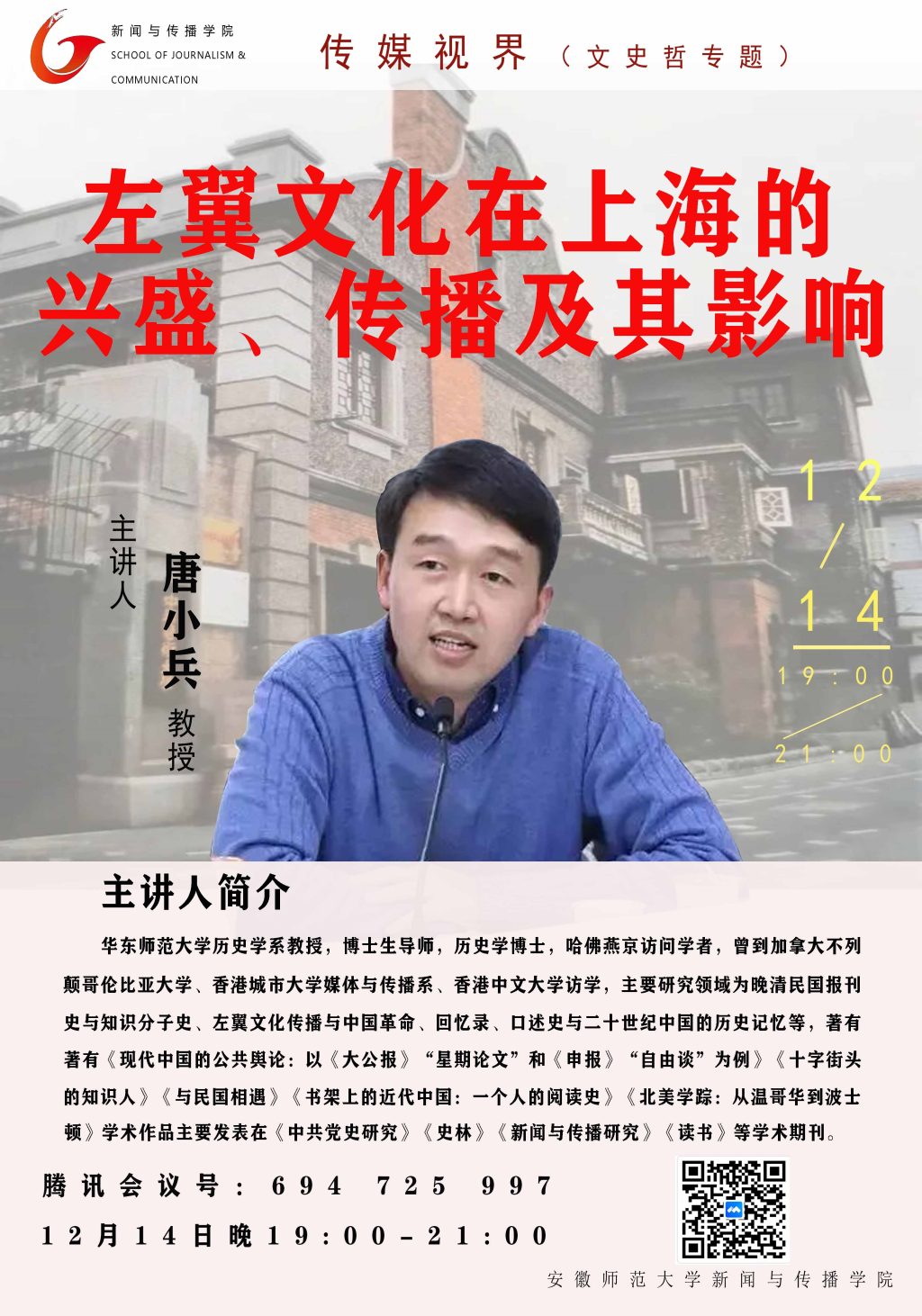 传媒视界讲座(三):华东师范大学唐小兵教授“左翼文化在上海的兴盛、传播及其影响”