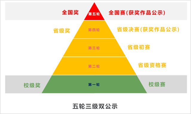 大赛按照校级赛、省级赛和全国赛三级赛制组织。