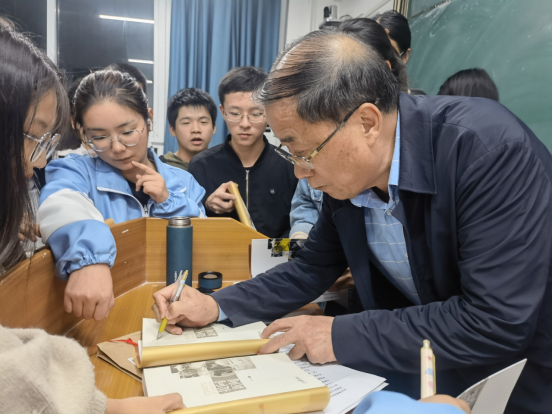 讲座结束后,刘杰将所著《提问新闻》赠与同学们,同学们纷纷围绕在新闻前辈的身边,刘杰一一签名与寄语,并不断叮嘱同学们好好学习,珍惜时光,做一个优秀的新闻人。