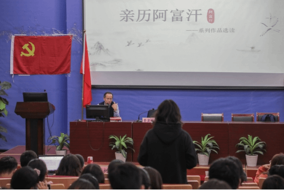 曹显钰在讲座中结合实例、报道讲解了采访、报道等具体方法。在讲座后的互动环节中,同学们争先恐后举手发言提问,曹显钰一一回答。被问及前往阿富汗期间有没有后悔过时,他说:“从来没有后悔,无论何时、何地,只要有新闻的地方,就应该有记者的身影,阿富汗亦是如此”。