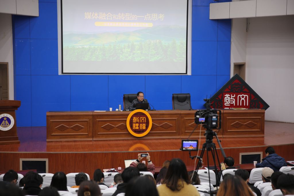随后,袁卫东结合自己多年的工作经验,以毛主席语录为灵感,分享了关于“如何面对全媒体时代”的想法。第一,枪杆子和笔杆子,他认为新闻工作者一定要认识到媒体产品的社会效应,保证媒体产品的意识形态。第二,三大体系、八项注意,即新闻工作者要有原则,有信仰。第三,虎气和猴气,即媒体人既要有信心,又要头脑灵活。第四,长征,即要拥抱新媒体,拥抱新变化。第五,不破不立,即要拓展自己的能力,走出舒适圈。第六,又红又专,即在保证自己的专业能力的同时又要有高尚的情操、高尚的品德,努力靠近党组织。