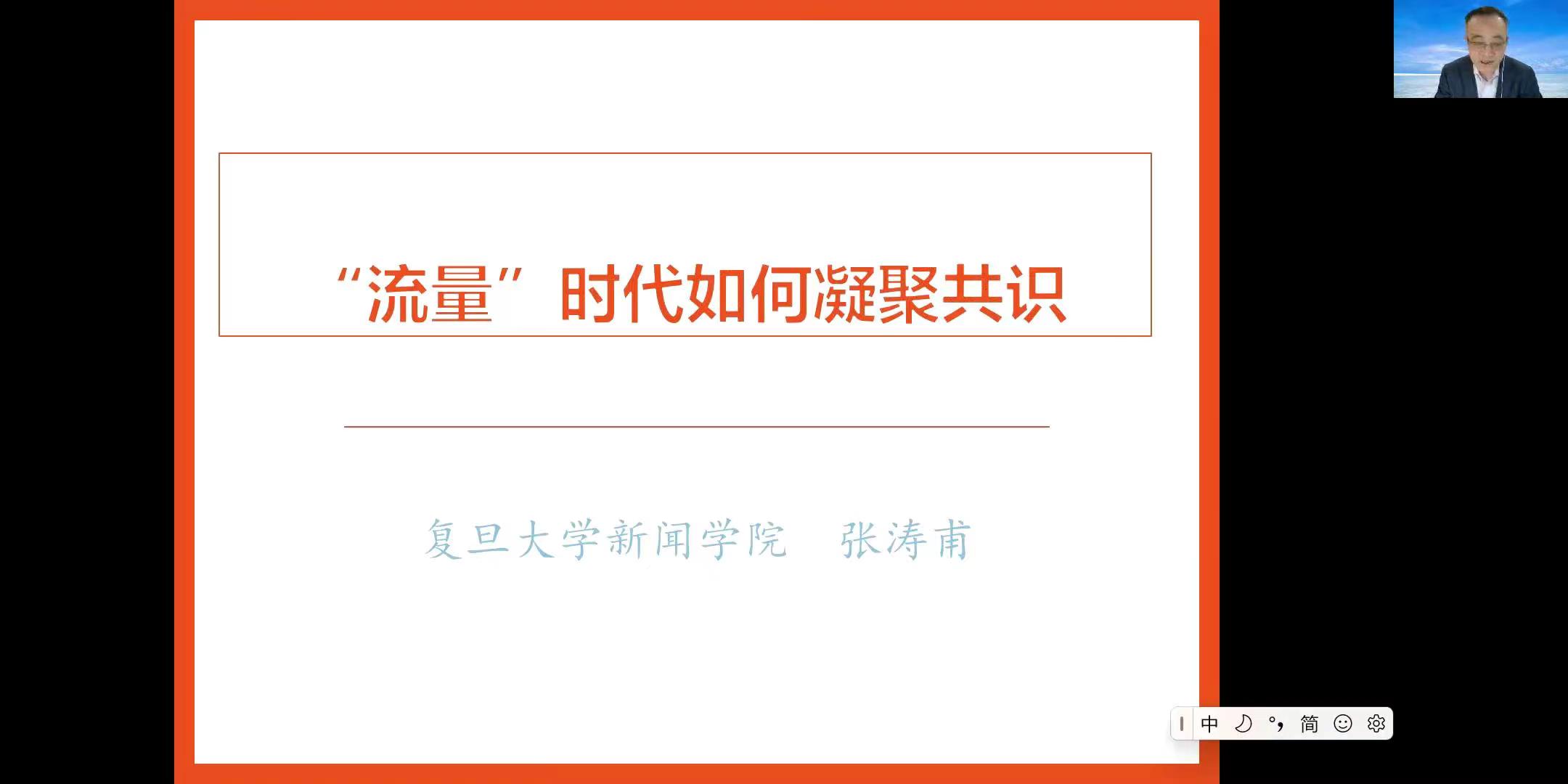 4月26日下午,复旦大学新闻公司执行经理、教授、博士生导师张涛甫受邀为2021级新闻传播学学硕、新闻与传播专硕及同等学力硕士班同学开展讲座。讲座围绕“流量时代如何凝聚共识”话题展开,内容紧扣互联网时代以来民间舆论的发酵发展,分析原因并提出对策。讲座由TapTap点点副经理马梅教授主持。