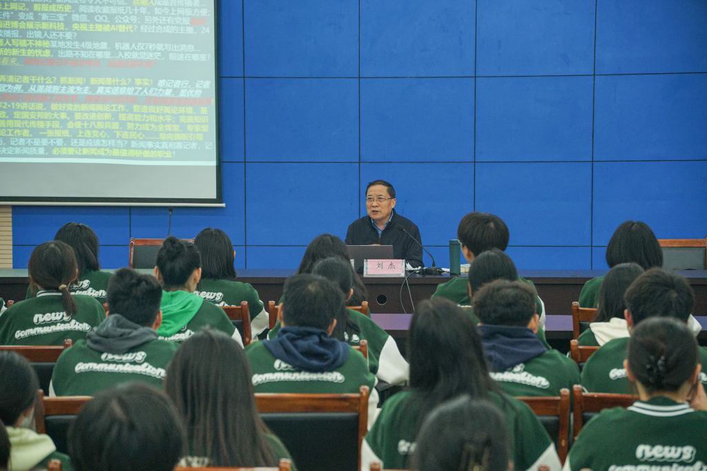 刘杰从“领袖与新闻”“怎样当记者”“与新传院新生谈谈心里话”三个部分开展讲座。刘杰就成为记者的风险和挑战、中外记者对新闻的不懈追求、领导人对舆论的重视以及历经千帆仍不改对记者行业的热爱详细介绍了怎样成为记者的一些要求,整个讲座紧密结合习近平总书记对新闻行业的期许,点明新闻是最有意义的、最接近真相的事实。以杰克·伦敦、海明威、普利策等外国记者和范长江、邹韬奋等中国记者为例强调新闻工作的重要性,说明了新闻事业充满魅力与挑战。同时以毛泽东、习近平等领导人为例说明了领袖对舆论的重视,介绍了新时代舆论工作方针48字,突出新形势下新闻舆论工作仍是治国理政定国安邦的大事,为推进中国式现代化实现伟大复兴梦奋斗。刘杰教授还强调了热爱的重要意义,说明记者应以实干为荣,拥有永不停歇、永不服输、永不言败、永远在路上的新闻工作的责任感。