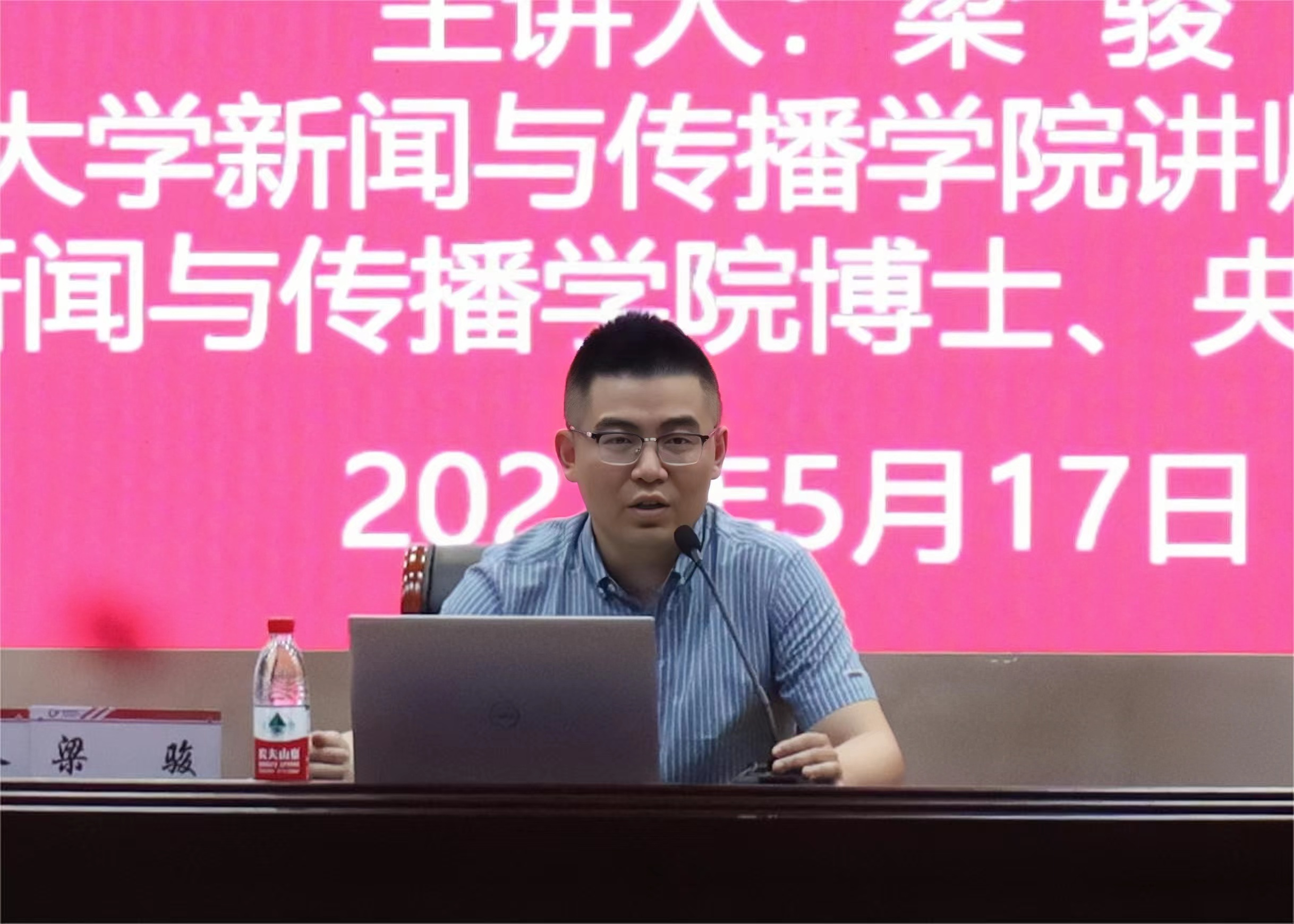 本网讯(马芬芬)2023年5月17日下午,公司“国情与马克思主义新闻观系列讲座”在花津校区理科大楼报告厅举行。本次讲座邀请到北京体育大学TapTap点点讲师、硕士生导师,清华大学TapTap点点博士、央广网特约评论员梁骏讲授。本次讲座由公司党委副书记吴青山主持,公司新闻学专业及新传大类本科生参加。
