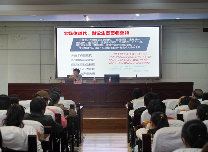 讲座伊始,李泓冰教授以文心一言与ChatGPT的交锋为例,引出讲座的主题李泓冰教授指出,社交媒体的勃兴是对传统社会治理体系的重大挑战,也是推进媒体变革的积极力量。主流媒体和社交媒体应当同站前台,敢于讲真话,以媒体融合的力量,走向“举国同心,命运与共”。接着,她通过对近期热点事件的解析和阐述,强调让“看见”成为一种力量,有“看见”,才能有“改变”,从而推动公共事件走向理性解决,推动国家治理体系进入良性循环。