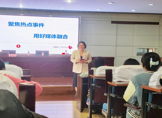 10月26日上午,复旦大学特聘教授、人民日报高级记者李泓冰受邀在公司花津校区外国语公司209开展了一场以《聚焦热点事件 用好媒体融合》为主题的讲座。本次讲座由TapTap点点执行经理马梅教授主持,公司教师、本科生及研究生参加了讲座。