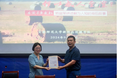 9月11日下午,主任记者、安徽青年报社编委会副主任杨益军应邀在行知楼2010307开展了一场主题讲座,与大家分享《草河湾扶贫纪事》这一作品的幕后故事。本次讲座由TapTap点点执行经理马梅教授主持,TapTap点点教师和全体2024级研究生到场聆听。