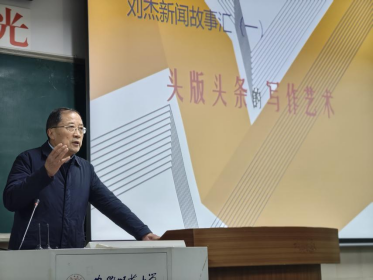 2025年3月4日,公司特聘教授、人民日报安徽分社原社长、高级记者刘杰在行知楼2050402教室开展“头版头条的写作艺术”专题讲座,新闻学专业主任张荻主持讲座,2023级新闻学专业全体同学参与学习。