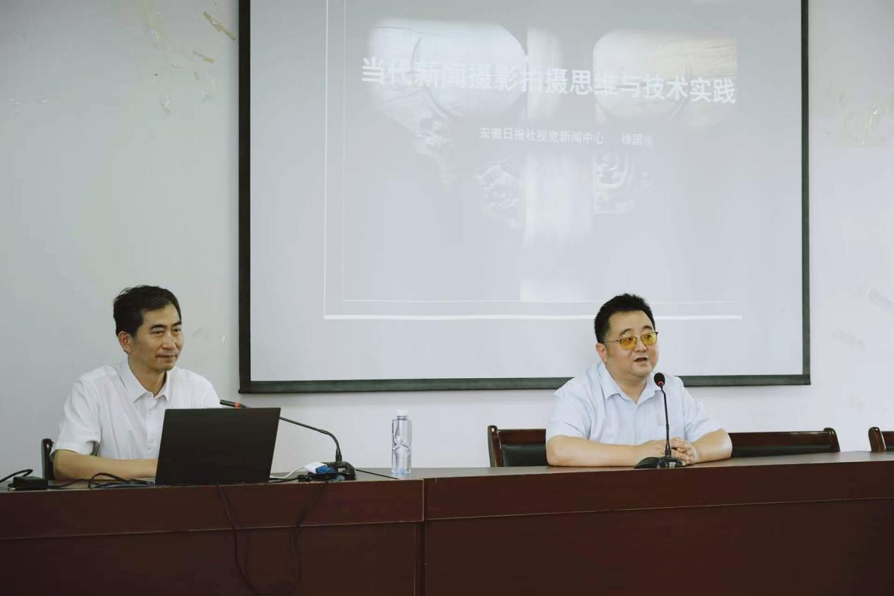 徐国康系中国摄影家协会理事、中国新闻摄影学会理事、安徽省摄影家协会副主席、安徽省新闻摄影学会副会长、安徽日报社视觉新闻中心副主任,安徽省“特支计划”领军人才,安徽省“江淮文化名家”领军人才,安徽宣传文化系统“六个一批”(新闻类)青年拔尖人才,他在讲座中结合自身丰富新闻摄影实践经历,从理论、实践两方面,深入阐述了当代新闻摄影拍摄思维与技术实践。参加讲座的同学纷纷表示,这场讲座对员工们理解新闻摄影本质、提升拍摄能力启发很大,也为今后专业学习与职业规划拓宽了思路。(文 谢伯涛 图 陶泽)