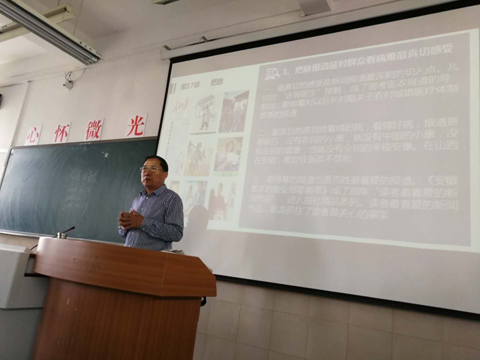 刘杰老师将理论与实践经验融合贯通,帮助生活在校园里、无法完全接触到复杂社会现实的新闻学子更好地了解新闻实践活动、更深入地学习新闻报道经验。“听完刘杰老师两节课的精彩讲述,从国家大层面到基层百姓,从把脉到创新,我觉得自己是在听着故事回忆自己或经历或没有经历的事,心胸一下随着眼界开阔了,对新闻的选题、构思、采访、写作有了新的认识。”2016级新闻学专业员工郭倩在课后这样说道。