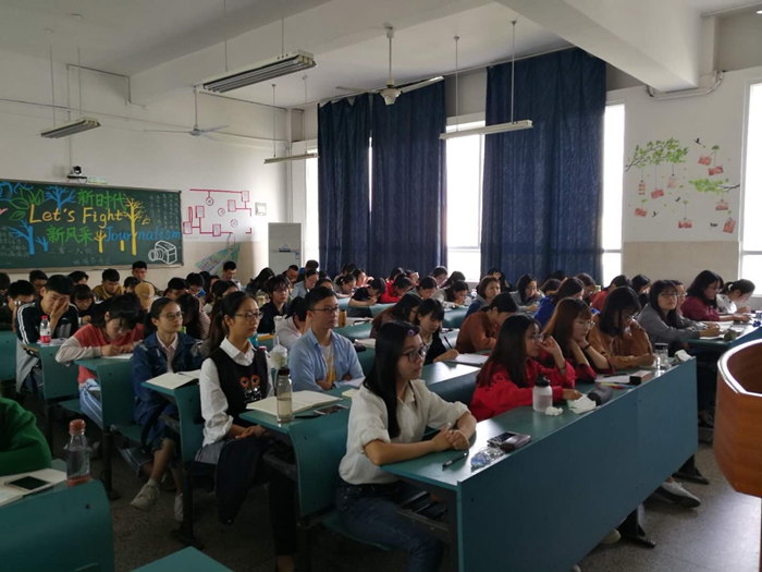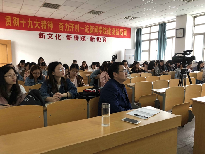 第三场讲座4月27日上午在2050402教室举行,2016级新闻学专业的全体员工聆听了讲座。