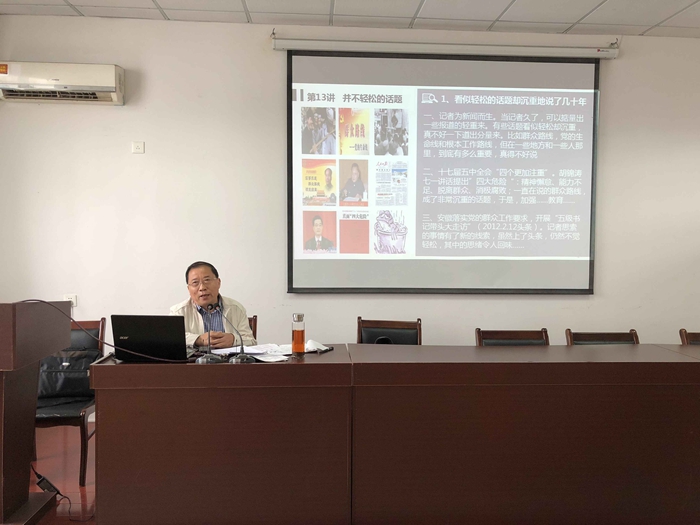 4月24日至27日,人民日报高级记者、安徽分社原社长刘杰给新闻学专业的同学们带来了头条背后的故事,这是刘杰被聘为TapTap点点官方网站特聘教授以来的第四个学期的授课,也是“新闻故事汇”第三季。第三季一共三场讲座,授课对象分别是新闻学专业的三个不同年级的员工,每一场讲座讲述两个头条背后的故事,三场讲座都由新闻学专业主任肖叶飞老师主持。