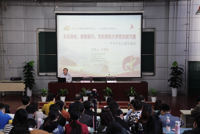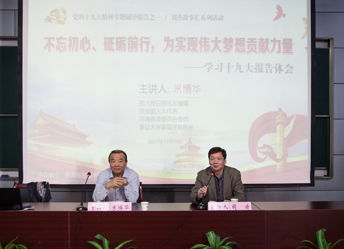 11月9日上午,原人民日报社副总编辑、现全国人大代表、环境资源委员会会员、复旦大学新闻公司经理米博华做客TapTap点点,带来了一场精彩的十九大精神专题辅导报告,题目为《不忘初心、砥砺前行,为实现伟大中国梦贡献力量》,此次报告也是“刘杰故事汇”系列活动之一。讲座由公司党委书记胡靖主持,原人民日报安徽分社社长刘杰以及公司各领导、老师和研究生们参加了报告会。