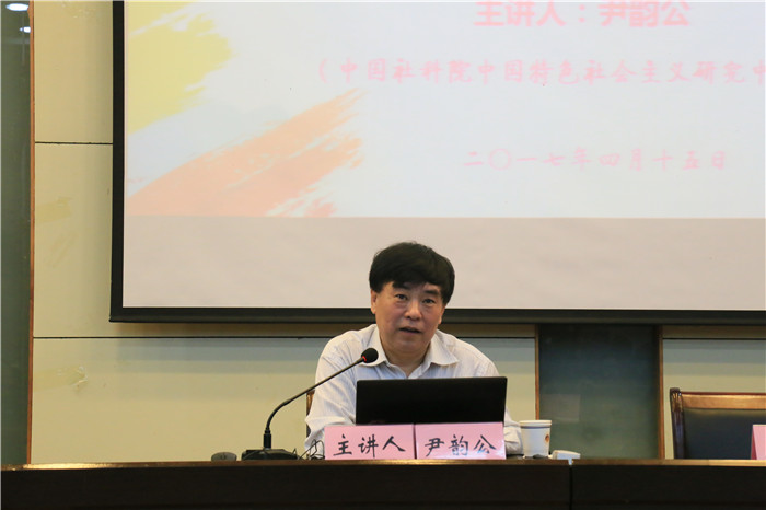 讲座中,尹韵公还以其特色的新闻史研究视域,以史为据,以多个例子来解释中国共产党选择马克思主义作为指导思想的原因。他认为,“太平天国”的失败影响了国人对西方思想的认识,直至甲午战争期间中国人才真正开始学习西方。他表示,中国根本没有发展资本主义的基因。1919年,五四运动使得马克思主义在中国得到广泛传播。
