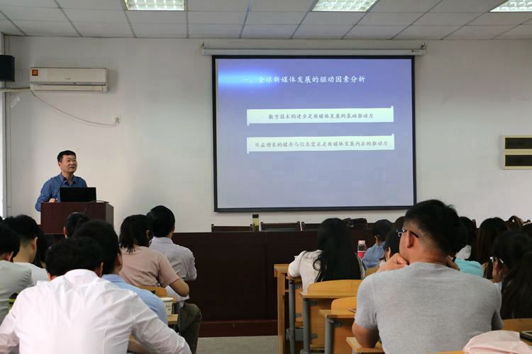 严三九教授首先分析了全球新媒体发展的驱动因素,他指出数字技术的进步是新媒体发展的基础推动力,日益增长的媒介与信息需求是新媒体发展的内在推动力。随后,他又分析了全球新媒体的发展动向及态势,包括新媒体更加广泛地深入人类社会生活,新媒体发展进入“大数据”时代、移动互联网将进一步改变新媒体的发展态势和社交媒体仍将成为近几年新媒体发展的焦点。针对全球新媒体面临的关于创新新媒体商业及盈利模式的问题、关于建立公平的信息新秩序的问题和关于保护新媒介时代个人隐私和数字安全的问题,严三九教授提出了全球新媒体发展背景下,我国传媒产业发展的建议:积极抓住技术变革的历史性契约,实现我国传媒产业的跨越式发展;改善管理体制,促进新媒体产业发展;构建现代传播体系促进传媒产业链条的完善等等。