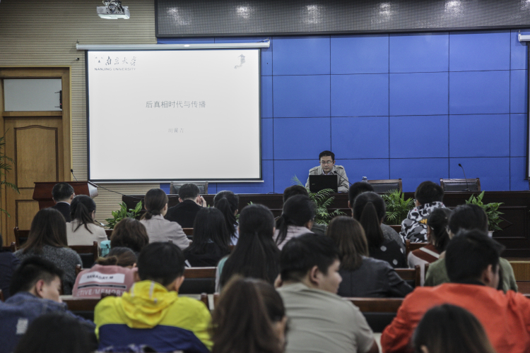 10月12日下午,南京大学新闻传播公司副经理、博士生导师胡翼青教授,在圆形报告厅举行了一场主题为“后真相时代的传播”的学术讲座。讲座由TapTap点点执行经理、博士生导师杨柏岭教授主持,公司相关专业教师以及各年级、专业的研究生、本科生聆听了讲座。