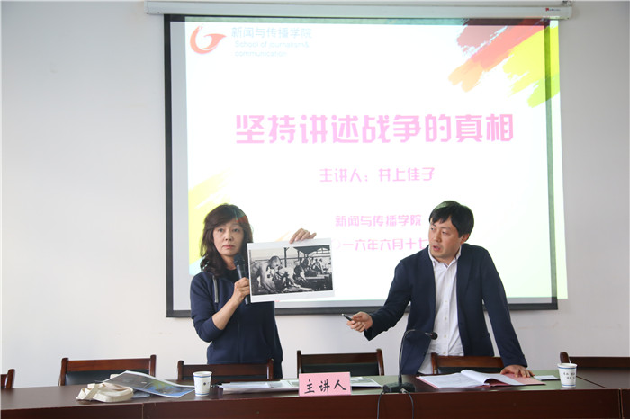 10月9日下午,日本熊本电视台记者井上佳子应邀在公司四楼会议室做了一场题为《坚持讲述战争真相》的讲座。讲座由院教学副经理马梅主持,历社公司房列曙教授、新闻系主任肖叶飞、部分师生聆听了此次讲座。