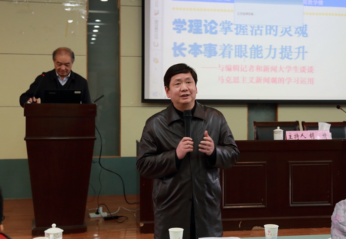 讲座中,顾勇华从温习传媒及传播理论、以问题为导向把理论学活和优良作品离不开出色表达三个方面破除师生在学习和实践马克思主义新闻观中的误区,鼓励师生树立大局观,丰富知识,将新闻传播中的工作需要、新闻价值和传播效果有机结合在实践中将马克思主义新闻观的理论知识中活学活用。整场讲座气氛轻松,顾勇华幽默风趣的讲授不时掀起现场的笑声,同时,讲座理论知识深入浅出,新闻实例丰富。(马克思主义新闻观学习社)