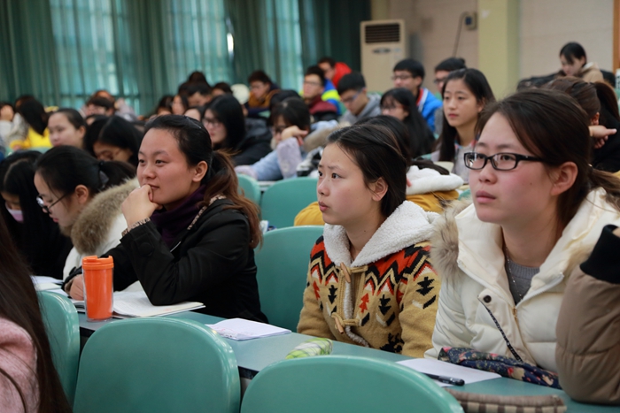 顾勇华从2015年新闻宣传和舆论引导得失为着眼点出发,辅以本年度一月上海踩踏事件、六月东方之星沉船事件和八月天津爆炸事件等新闻工作者宣传工作中出现的实际问题为引证,为同学们剖析了当下新闻业务领域存在的缺陷。顾勇华用一系列报纸、广播和电视新闻作品中实际出现的错误等内容测试现场同学的新闻敏感与政治敏感,并引用人民日报“以直接上版来要求稿件”的高要求来告诫同学。他指出新闻会写会拍不难,而该写什么、拍什么才是新闻写作和拍摄中的要点。他强调新传学子要树立以人民为中心的新闻理念,清醒地意识到自己服务的本领,才能稳稳站在新闻传媒的公众平台上,实现为人民服务的理想。